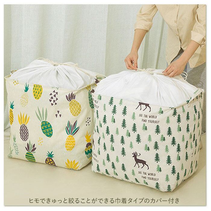 ・ヒモできゅっと絞ることができる巾着タイプのカバー付きで、生活感が出てしまいがちな洗濯物もすっきりと覆って目隠しできちゃう♪