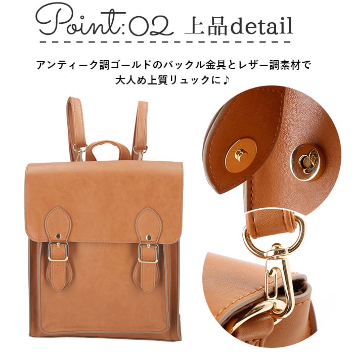 ・ストラップを付ければショルダーバッグやリュックとして、ストラップを外せばハンドバッグに変身。