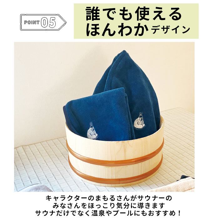 ・まとめ髪のままでもすっぽり被れるサウナハットで、サウナライフを快適にサポート!パサつきやすい髪の乾燥を防いで頭部を熱からしっかりガードするので、のぼせにくい!