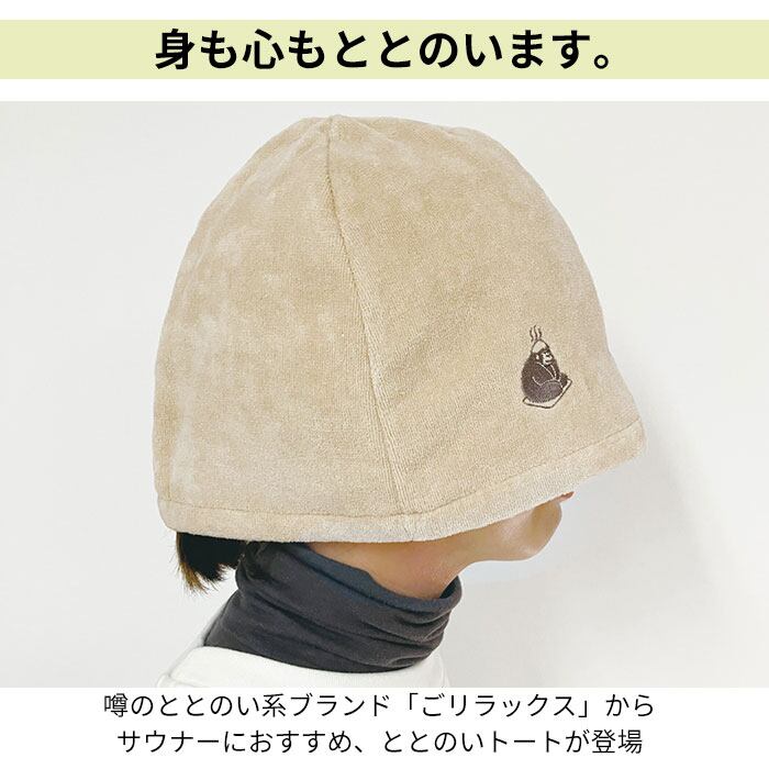 ・可愛いゴリラのワンポイント刺繍がアクセント。ごリラックスととのいサウナハット♪