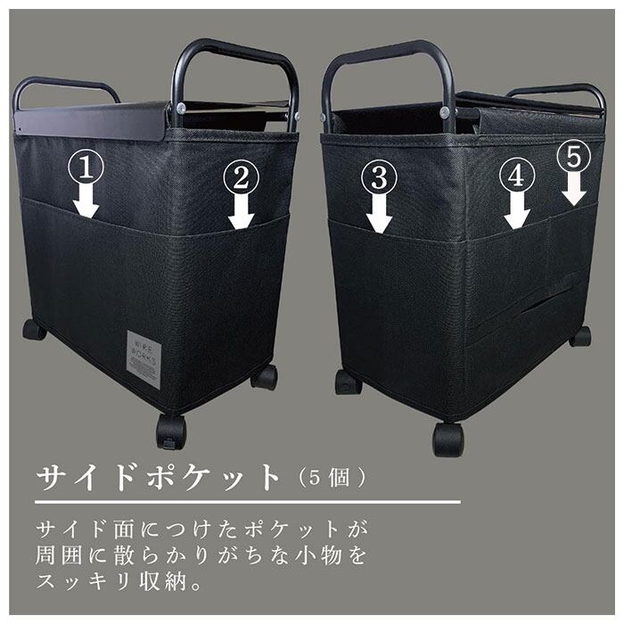 ・サイド面に小物の整理に便利な5つのオープンポケット付き。
