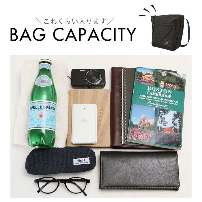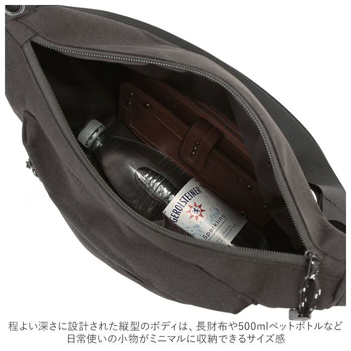 ・程よい深さに設計された縦型シルエットのボディは、長財布や500mlペットボトルなど日常使いの小物がミニマルに収納できるサイズ感。