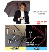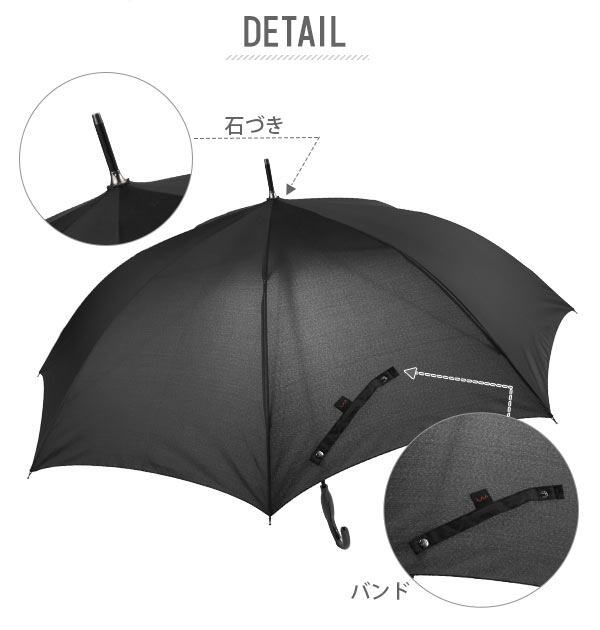 mabu マブの高強度×ジャンプタイプの長傘、高強度傘ストレングスジャンプライトです。しっかりしてとっさの雨や風にもさっと開いて対応できる傘です。一般の傘より親骨が太いグラスファイバーを使用し、通常より多く配した親骨を支えるパーツで耐久性を向上。風を受けても裏返りにくい構造になっています。持ちやすい独特なふくらみのある持ち手、片手で開けるジャンプ式の長傘です。