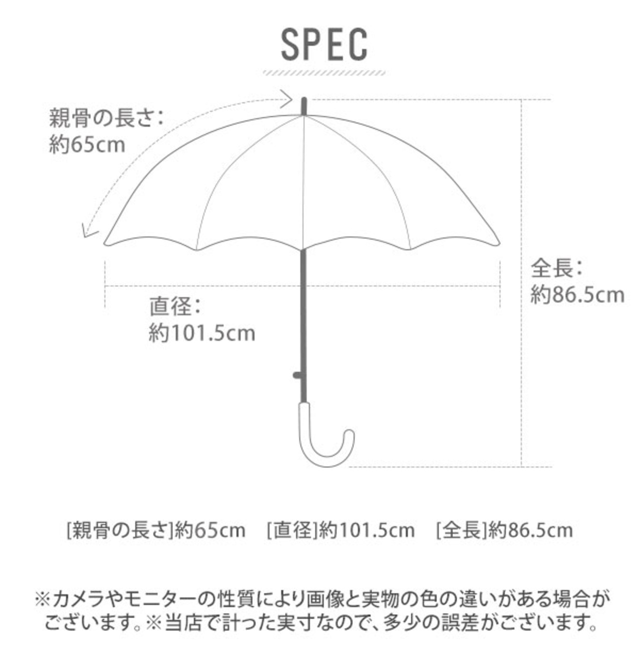 [親骨の長さ]約65cm [直径]約101.5cm [全長]約86.5cm