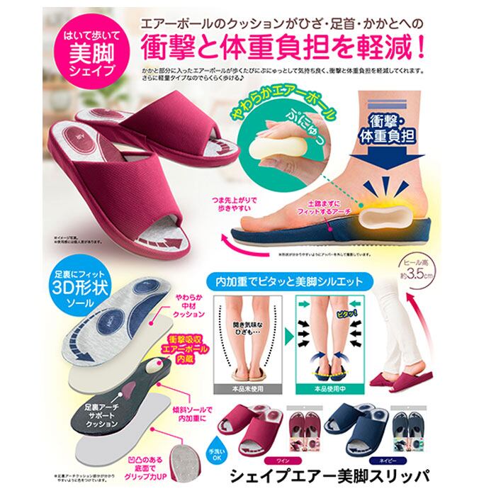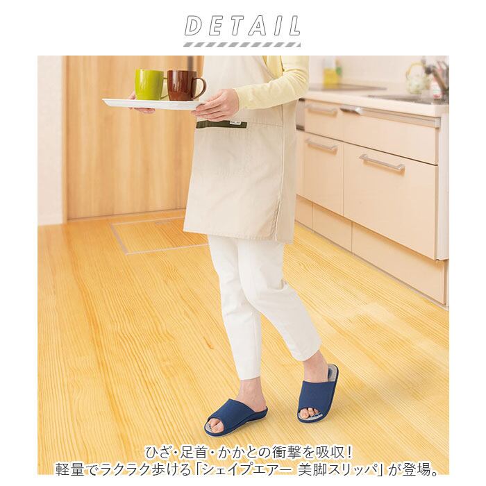 ・ひざ・足首・かかとの衝撃を吸収!軽量でラクラク歩ける「シェイプエアー 美脚スリッパ」が登場。