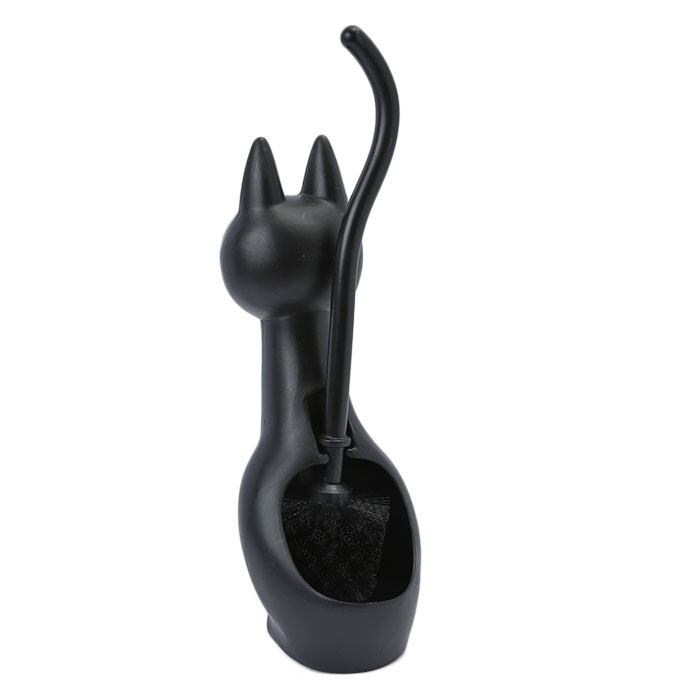 【廃盤】トイレブラシ かわいい 通販 おしゃれ コンパクト ポット セット 収納 トイレ掃除 ブラシ 猫グッズ 雑貨 ネコ ねこ ケースセット 掃除用品 猫雑貨 黒猫 ねこのしっぽの物語
