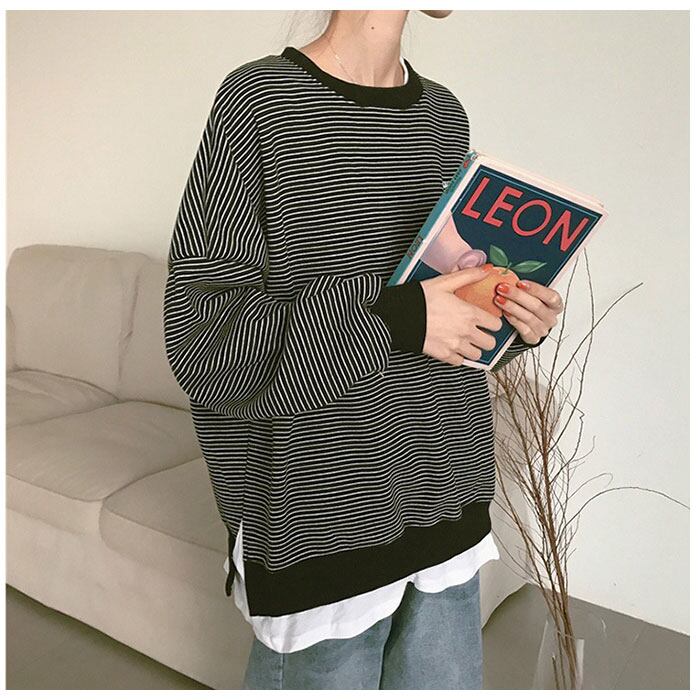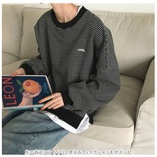 トレーナー レディース おしゃれ 通販 大きいサイズ スウェット レイヤード カットソー カジュアル 冬服 冬物 おしゃれ トップス 長袖 シンプル ルームウェア 秋 冬 ボーダー ブラック ホワイト mサイズ lサイズ