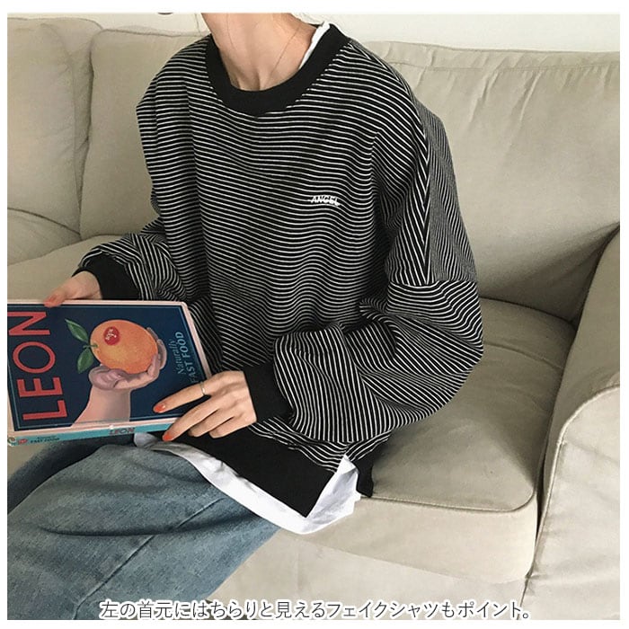 ・ゆるっとして可愛い、重ね着風のボーダートップスが新登場♪