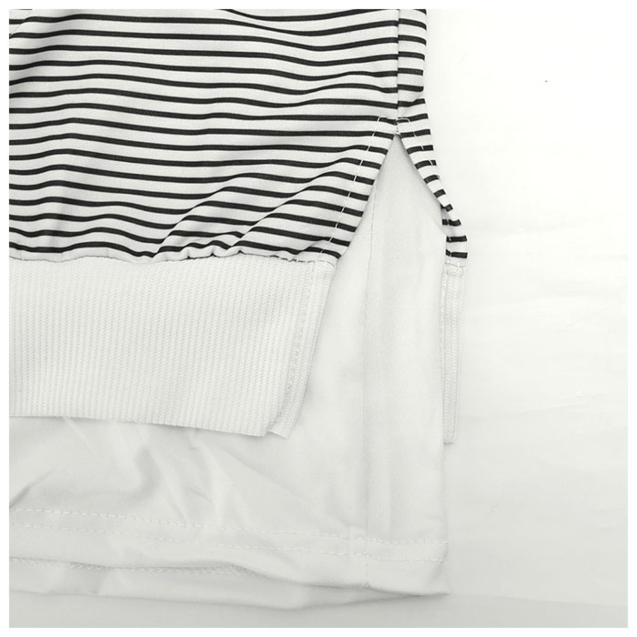 ・袖口と裾部分には単色のリブを使用。