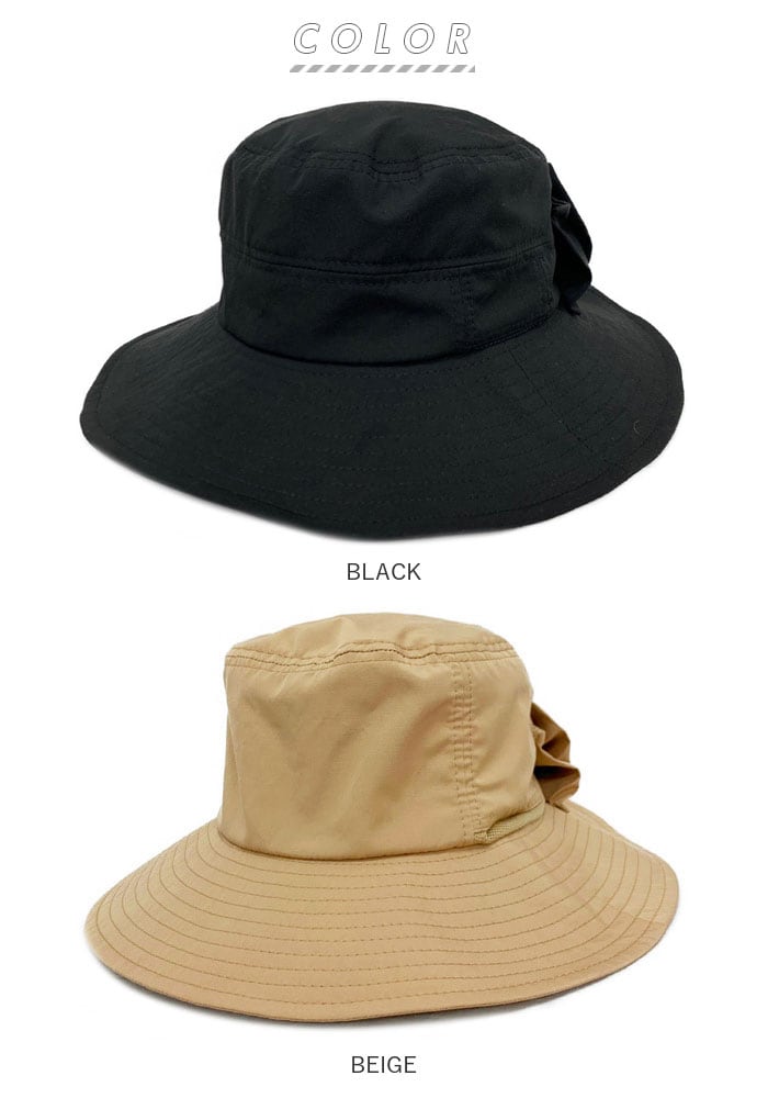 ・優れたはっ水機能に紫外線カット加工を施したハイスペック生地に、背面のリボンでキュートさをプラス!ツイル・バックリボンハットが新登場。