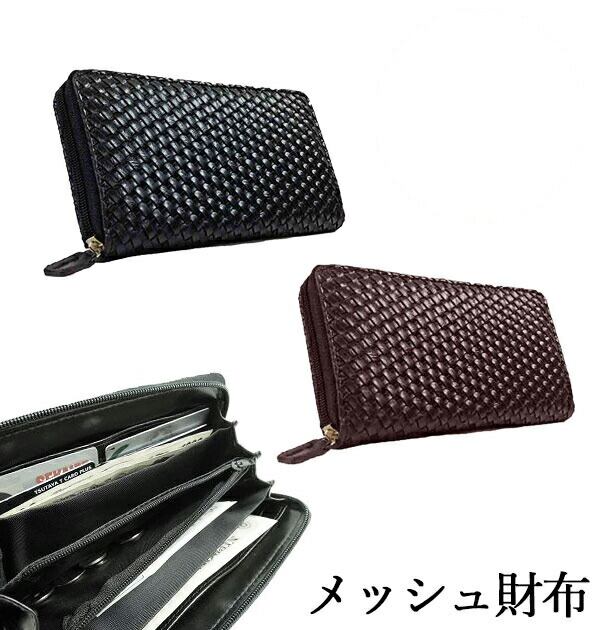 長財布 財布 ラウンドファスナー ロングウォレット 小銭入れ 通販 メンズ 紳士 レディース ビジネス メッシュ 編みこみ 黒 ブラック 茶 ブラウン メッシュ財布 サイフ さいふ 仕事用 プレゼント ギフト LONGWALLET