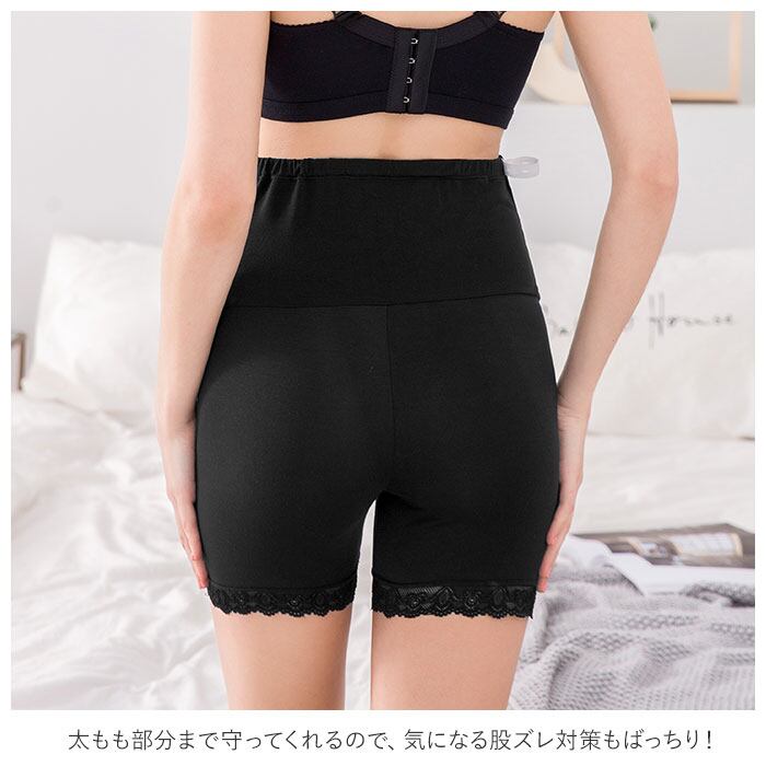 ・裾周りにソフトな感触のレースを配置することで、締め付け感を軽減。動いても捲りあがりにくいデザインに。