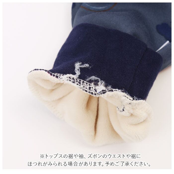 ・しっかりとした生地感で、内側はあったかボア仕様。寝冷えを防ぎ、快適な着心地。