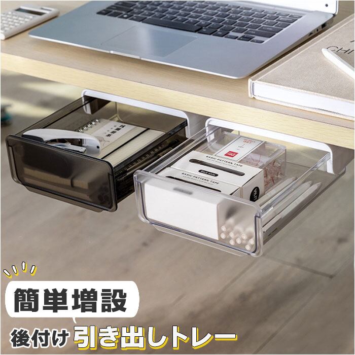 テーブル 後付け 引き出し 通販 収納 机下 引出し トレー 透明 整理 増設 スライド テーブル下 デスク下 スペース デスク テーブル 簡単 便利