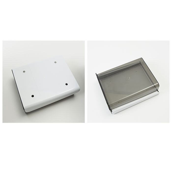・トレー前面はうっすら中身が確認できるボカシ加工。収納した中身が外から見えにくいので安心。