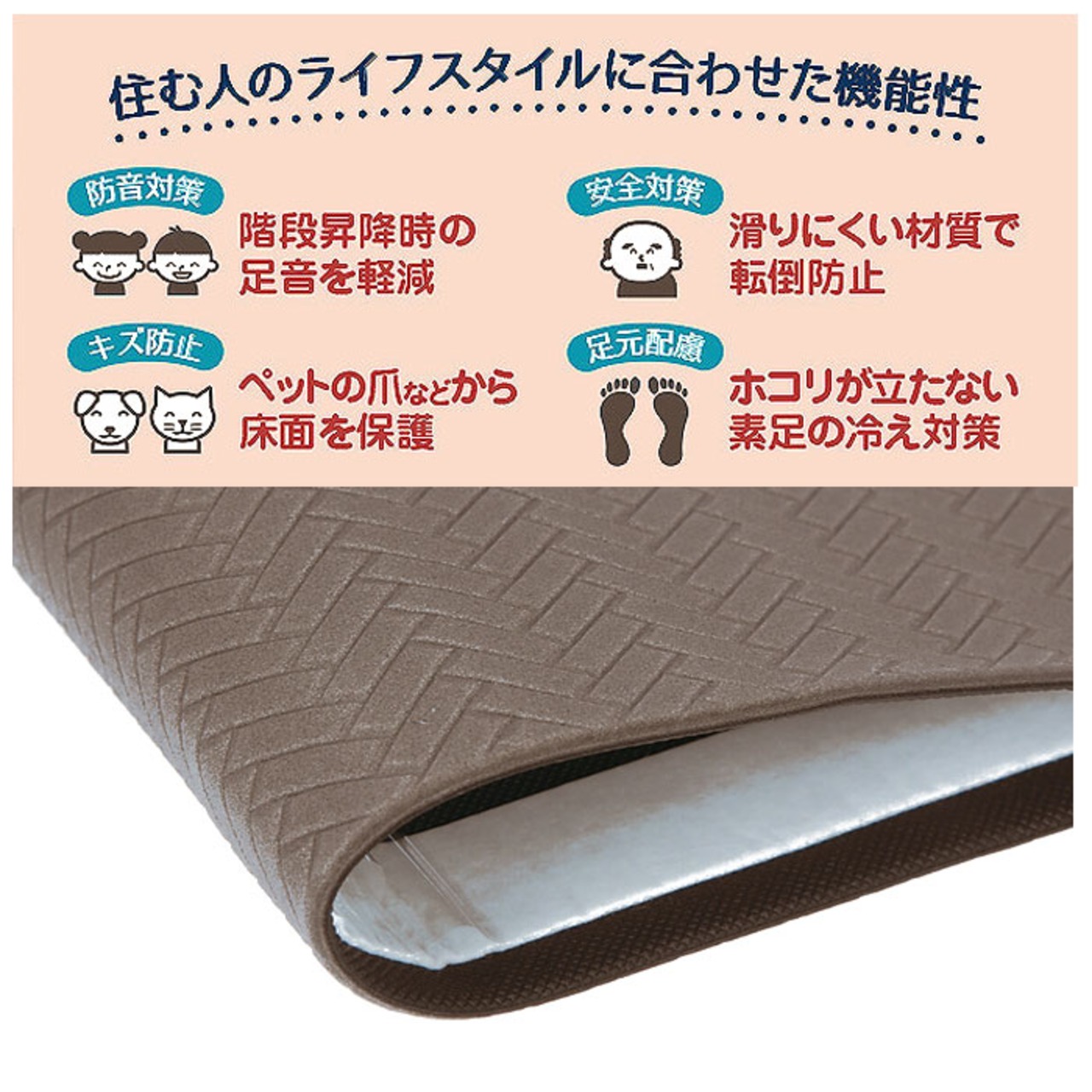・モチモチ弾力のある厚さ4mmのマットで、足への負担や階段昇降時の足音を軽減。