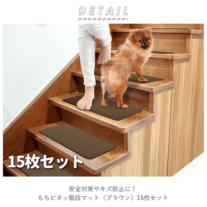・安全対策やキズ防止に!もちピタッ階段マット。15枚入り・ブラウン。