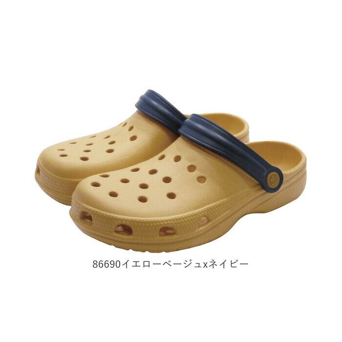 ・アッパーもアウトソールも柔らかな感触のEVA樹脂素材で一体成型。足裏から伝わる衝撃をふんわりと吸収し、履き心地抜群