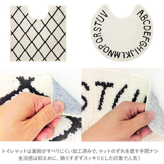 ・毛足がふわふわのトイレマットは、裏側がすべりにくい加工済みで、マットのずれを直す手間ナシ♪