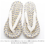 ・鼻緒部分もコットン素材で、指の付け根が痛くなりにくいやさしい造り。
