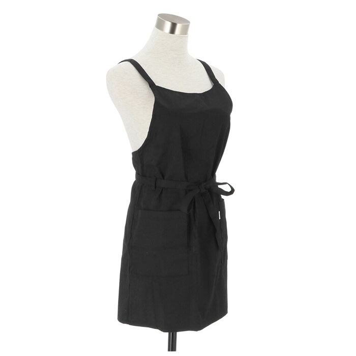 ・サッと首に掛けてキュッと前で結ぶ事でエプロンが取れずに作業がしやすい。(前面に紐を通すループ付き)