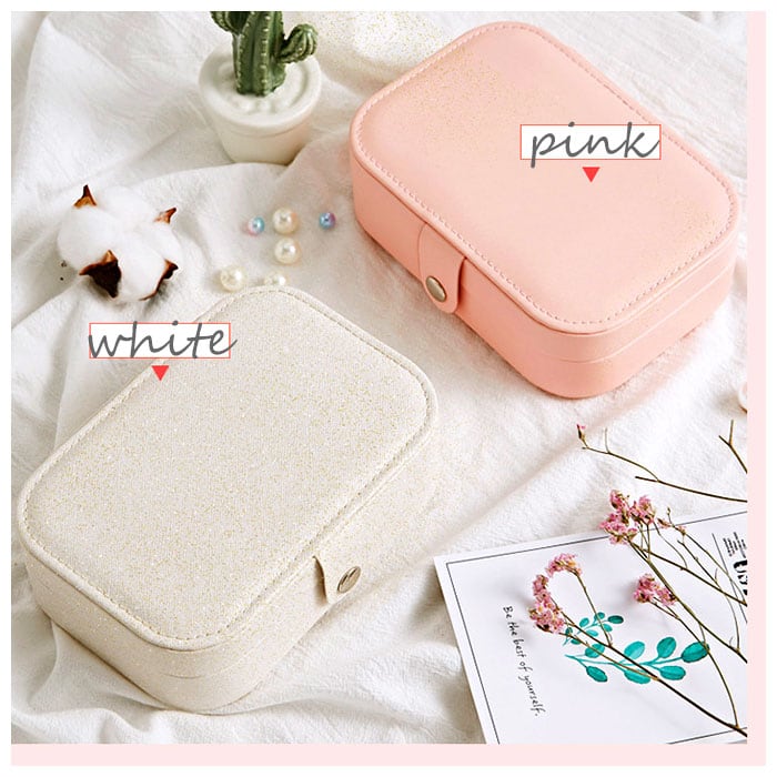 ・外側はPUレザーで高級感があり、ホワイトのみ金色の細かいラメ入り☆内側はベロア素材で大切なジュエリーをしっかり守れる♪