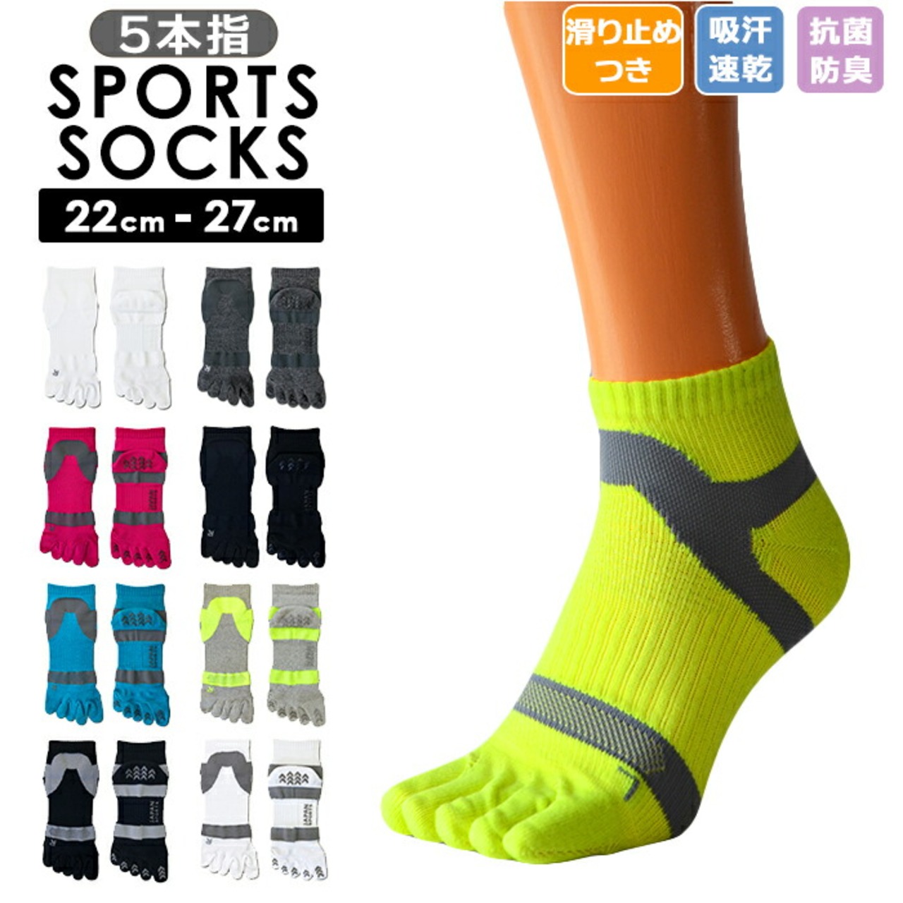 靴下 スポーツ 5本指 通販 スポーツソックス くるぶし 滑り止め メンズ レディース ソックス くつ下 靴した 滑らない 婦人靴下 紳士靴下 運動 ジョギング ウォーキング 左右専用 日本製