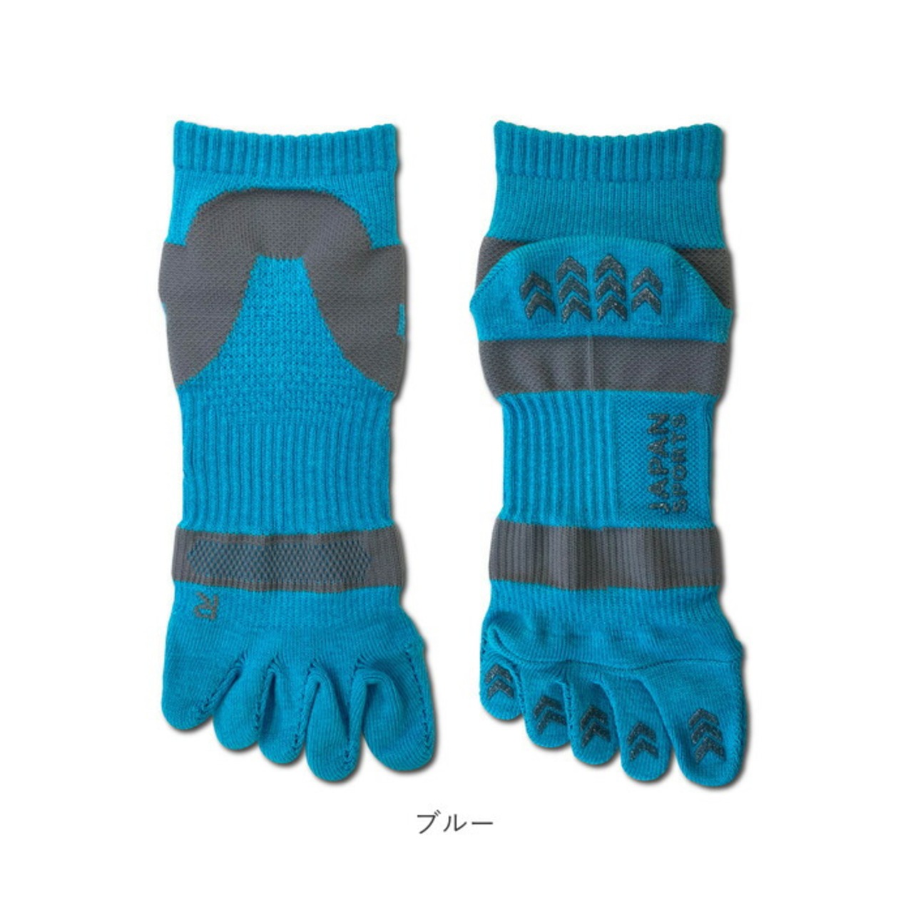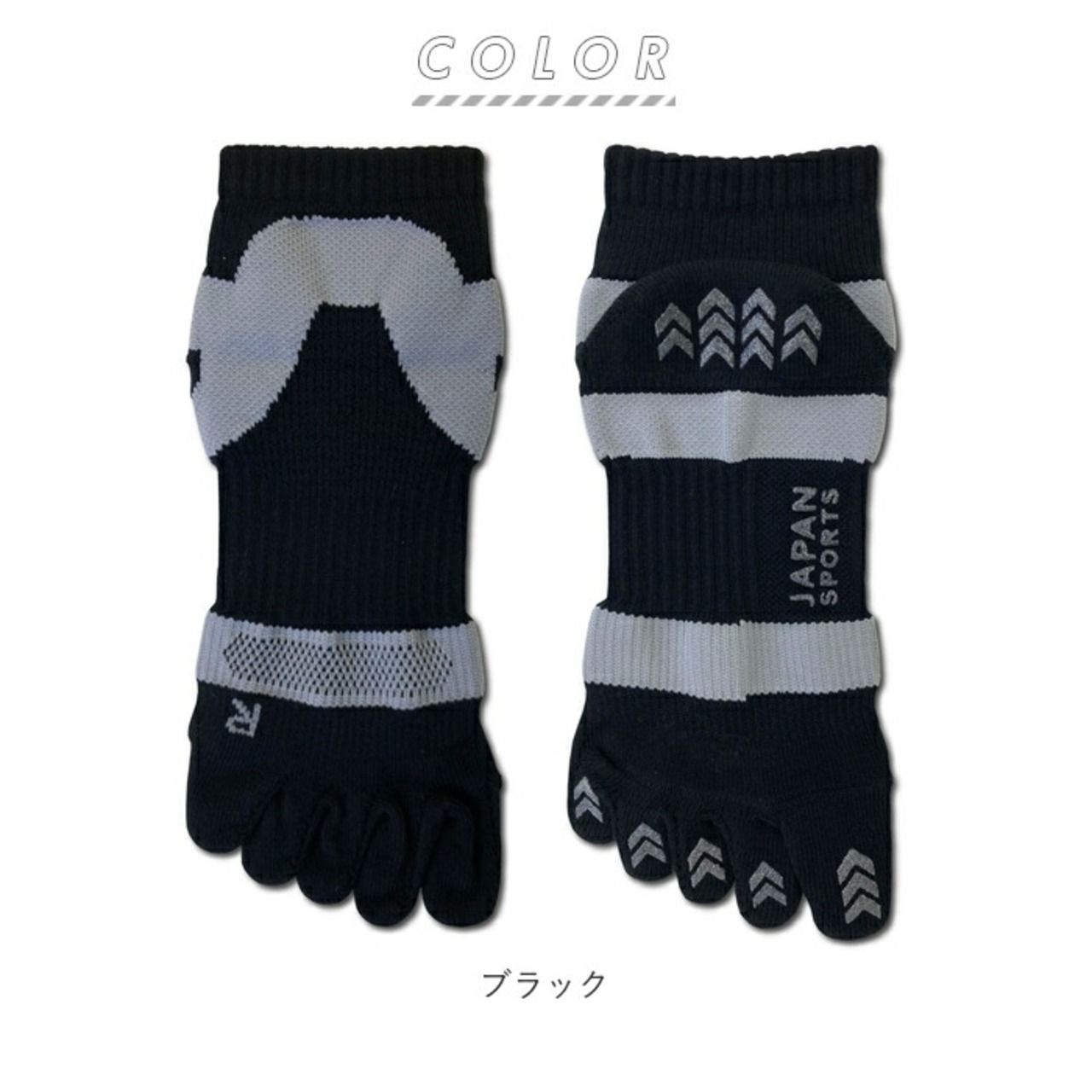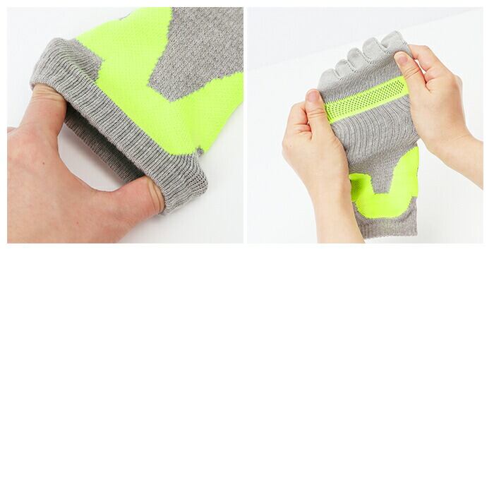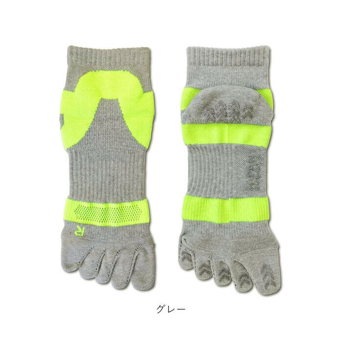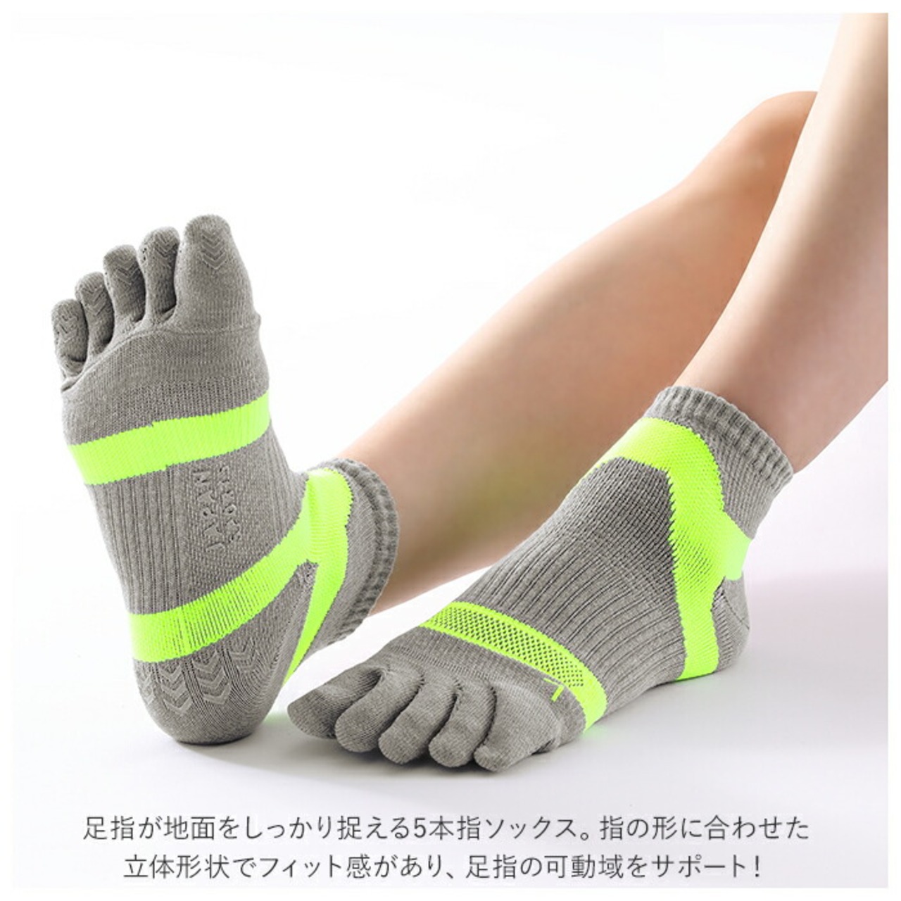 ・足先のムレを軽減し、足指が地面をしっかり捉える5本指ソックス。指の形に合わせた立体形状でフィット感があり、足指の可動域をサポート!