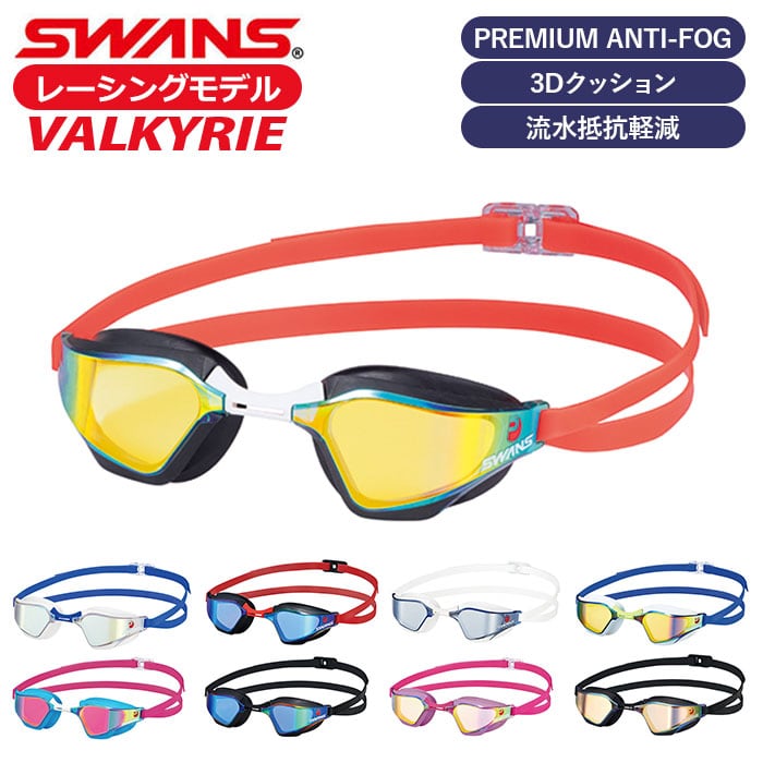 【廃盤】ゴーグル 水泳 大人 通販 競泳 クッションあり UVカット SWANS スワンズ 曇り止め くもり止め レーシングクッション付き スイミングゴーグル ミラータイプ SR-72MPAF PRE