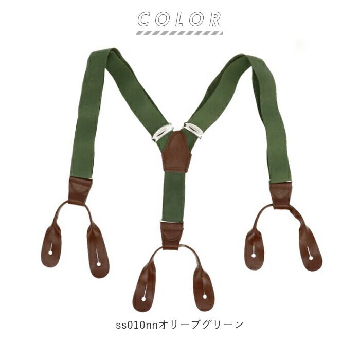 ・留め具が二股に分かれたボタン留めの仕様。(※ウエスト部分にサスペンダー用のボタンが付いているパンツに使用するタイプとなります[前4個・後ろ2個]。)