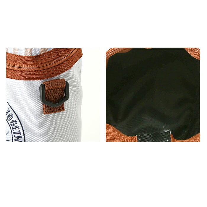・ボトルカバーのフタ部分が斜めに開き、面ファスナーで固定可能。