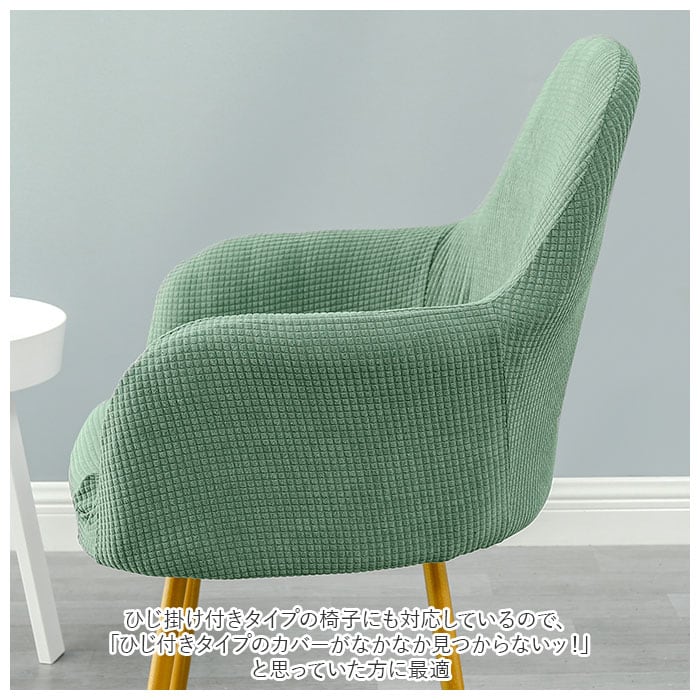 ・ひじ掛け付きタイプの椅子にも対応しているので、「ひじ付きタイプのカバーがなかなか見つからないッ!」と思っていた方に最適。