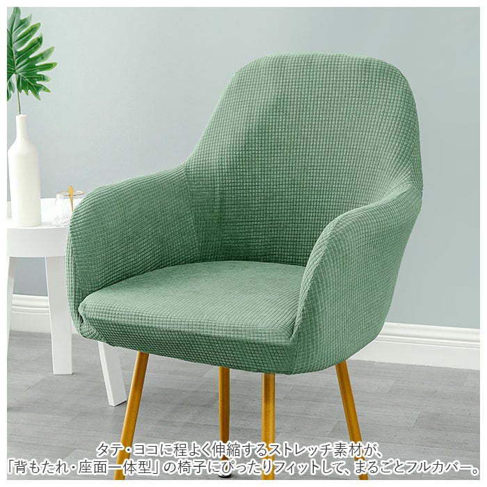 ・タテ・ヨコに程よく伸縮するストレッチ素材が、「背もたれ・座面一体型」の椅子にぴったりフィットして、まるごとフルカバー。