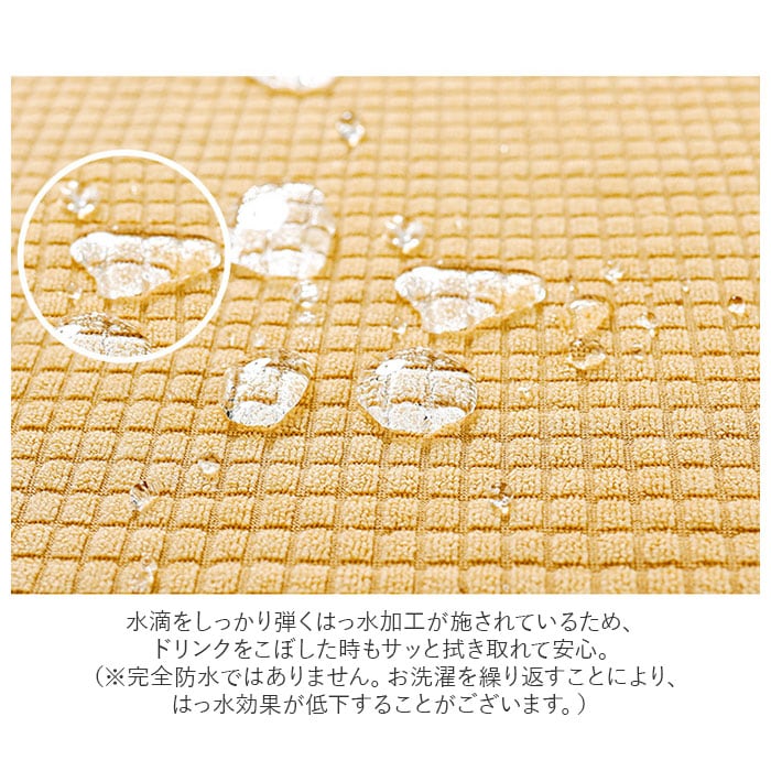 ・水滴をしっかり弾くはっ水加工が施されているため、ドリンクをこぼした時もサッと拭き取れて安心。(※完全防水ではありません。お洗濯を繰り返すことにより、はっ水効果が低下することがございます。)
