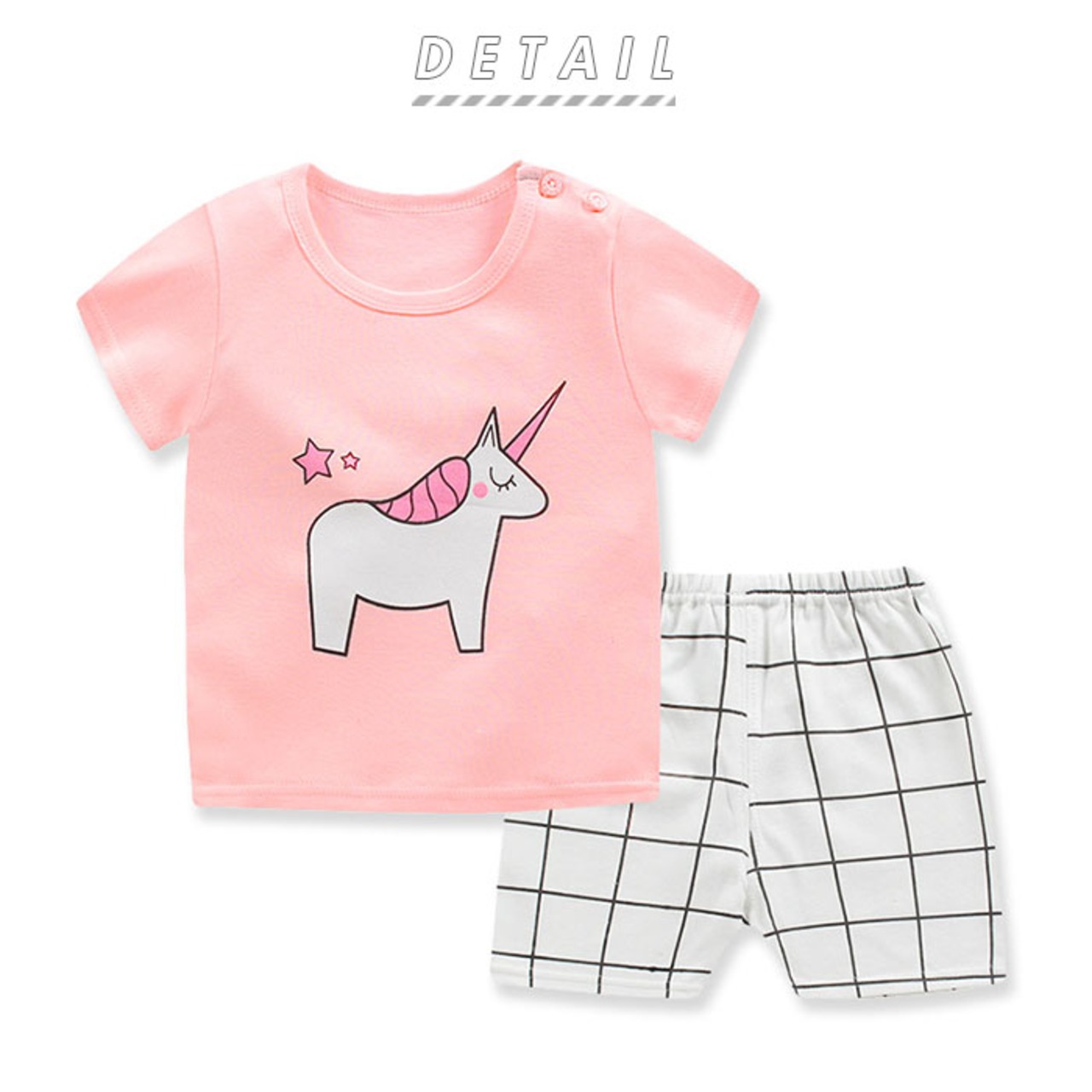 ・ポップなプリントがかわいい、半袖と半ズボンの上下セット。
