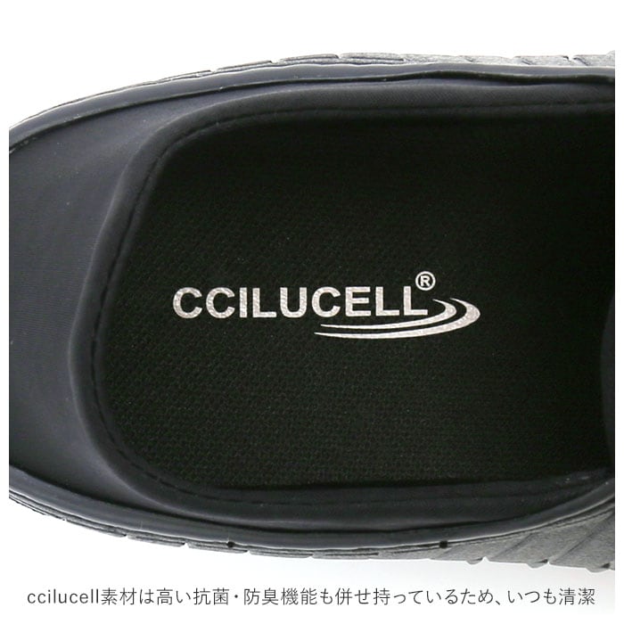 ・ソールの素材に、cciluが独自開発した合成樹脂ccilucell(チルセル)を使用し、歩行時の衝撃を効果的に吸収。