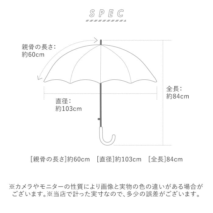 ※傘生地には防水はっ水加工を施していますが、激しい雨や長時間のご使用では雨がしみこむことがございます。