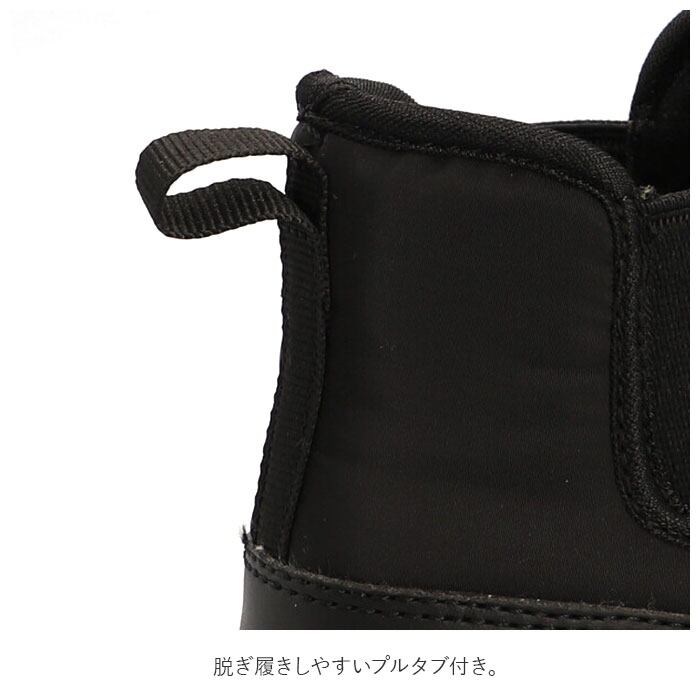 ・履き口の両サイドに、伸縮性のあるゴム素材を織り込んだサイドゴア仕様。足入れがスムーズ◎