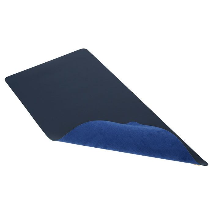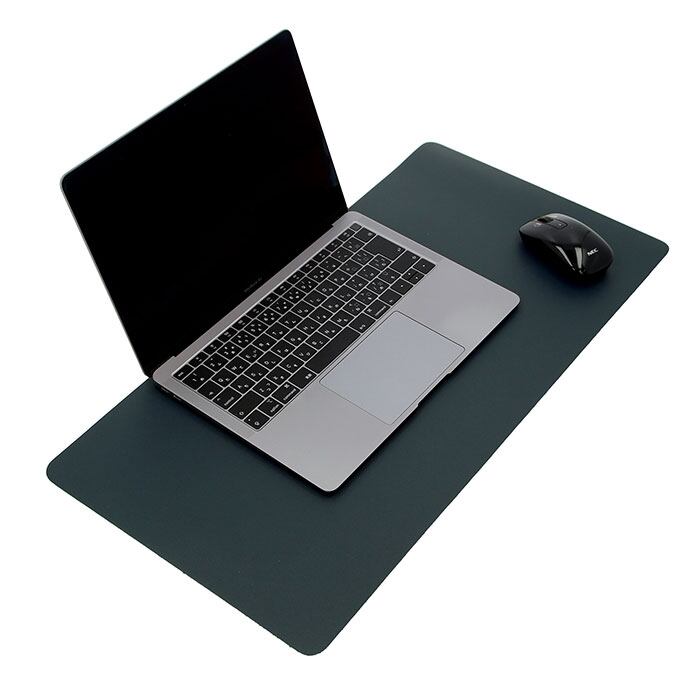 ・程よい硬さで反り返りもなく、裏面はスウェード調に仕上げたフェイクレザー素材を使用。ズレにくく机にしっかりとフィット。