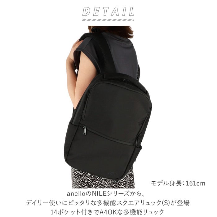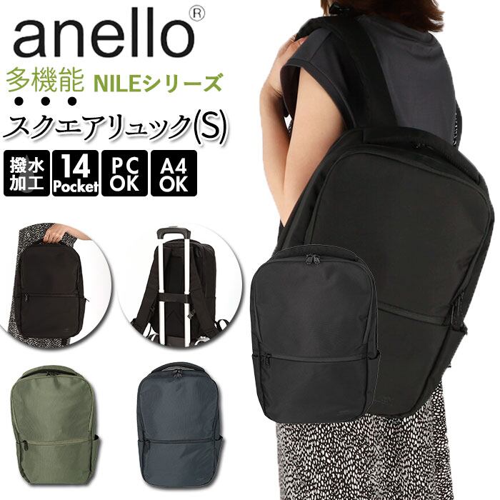 アネロ リュック 撥水 通販 PC 13インチ 大容量 レディース 通勤 通学 A4 大人 おしゃれ シンプル ナイロン リュックサック デイパック anello NILE ナイル 多機能スクエアリュック S ATS0751 男女兼用バッグ