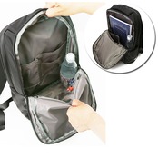 ・メインルームはファスナーポケット×1とオープンポケット×3、ペン挿し×2、さらにペットボトルが立てて入れられるホルダーポケットも装備。