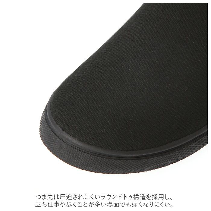・つま先は圧迫されにくいラウンドトゥ構造を採用し、立ち仕事や歩くことが多い場面でも痛くなりにくい。