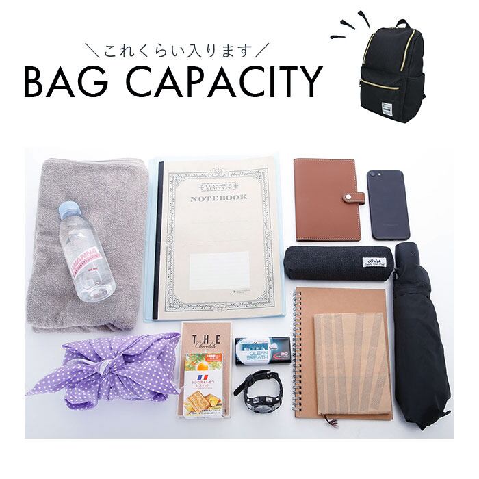 16Lの大容量&A4サイズがすっぽり入る大きさだから、通勤・通学から、旅行バッグとしても活躍◎