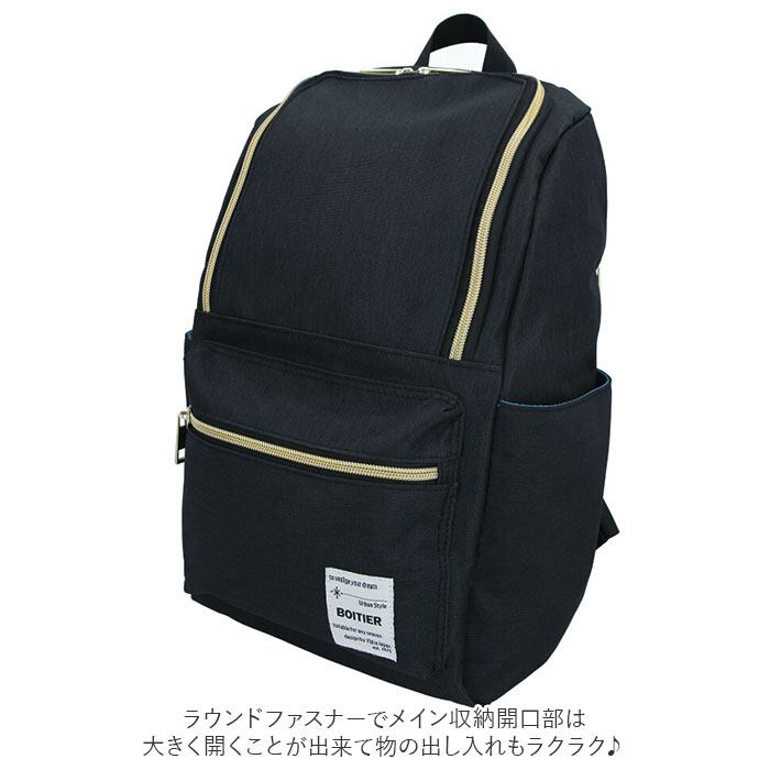 ・ラウンドファスナーでメイン収納開口部は大きく開くことが出来て物の出し入れもラクラク♪