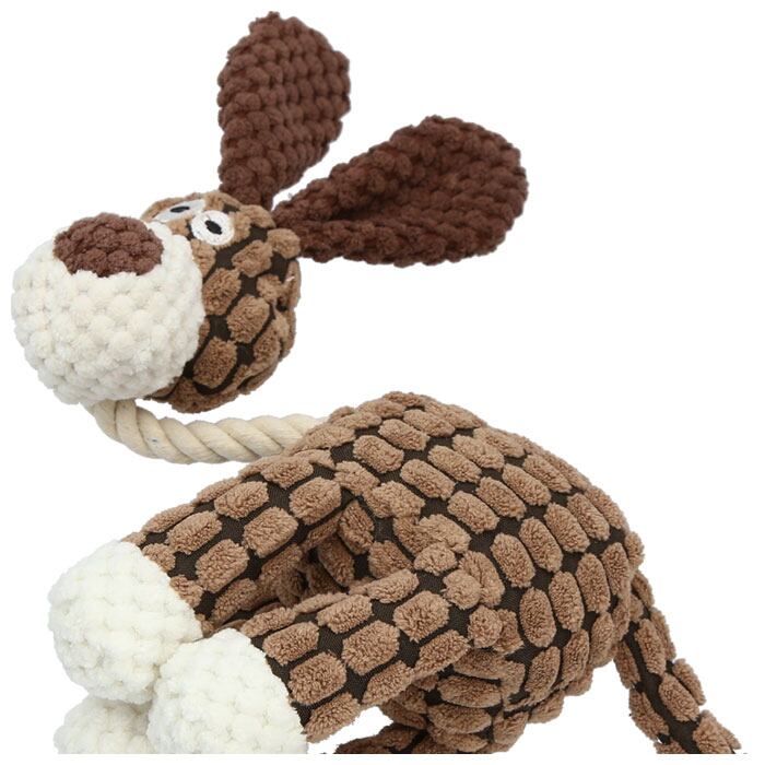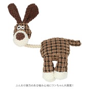 ・ぬいぐるみの身体部分にはつぶつぶ触感の生地を使用し、ふんわり弾力のある噛み心地にワンちゃん大興奮!