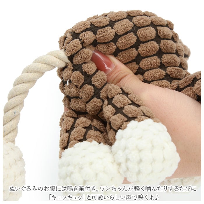 ・ぬいぐるみのお腹には鳴き笛付き。ワンちゃんが軽く噛んだり、踏んだりするたびに「キュッキュッ」と可愛いらしい声で鳴くよ♪