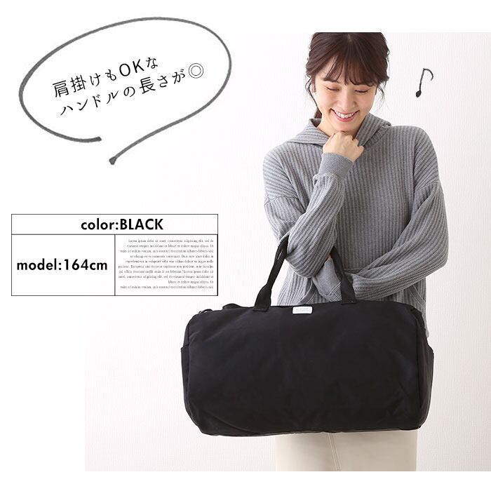 ・軽くて持ち運びやすいボストンバッグ。大容量サイズなのでたっぷり荷物が入れられる♪