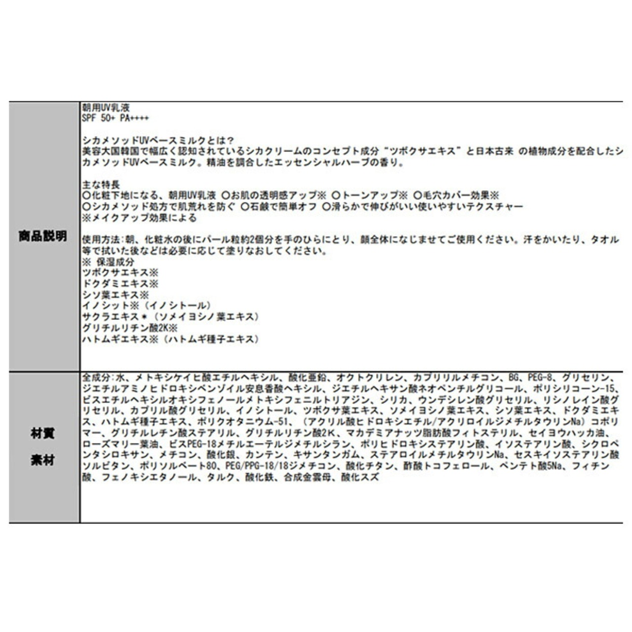 シカクリーム 日本製 通販 spf50乳液 シカ 乳液 cica シカUVミルク シカメソッド 日焼け止めクリーム spf50+ 朝用乳液 スキンケア CICA method UV BASE MILK 化粧下地 化粧品 コジット
