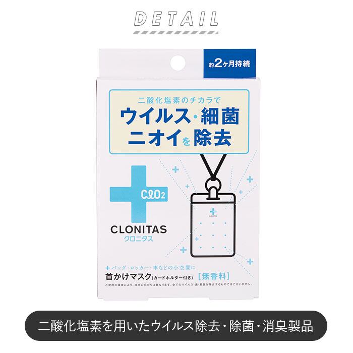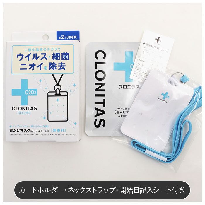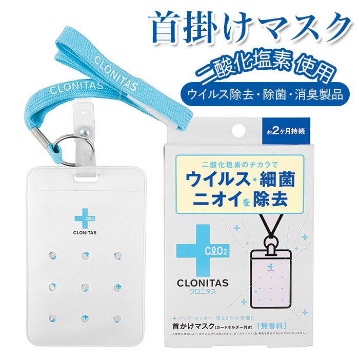 クロニタス 首かけマスク 通販 首掛けマスク 二酸化塩素 首かけ ウイルス除去 除菌 消臭 空間除菌 車内 小空間 ネームホルダー型 ストラップ 約 2ヶ月 持続 エアマスク 首掛けタイプ ネックストラップ CLONITAS GPP グローバルプロダクトプランニング
