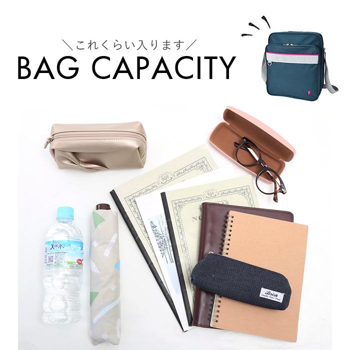 ・スクエアフォルムとスタンダードなカラーリングが制服スタイルにしっくりと馴染む、シンプルなショルダーバッグ。